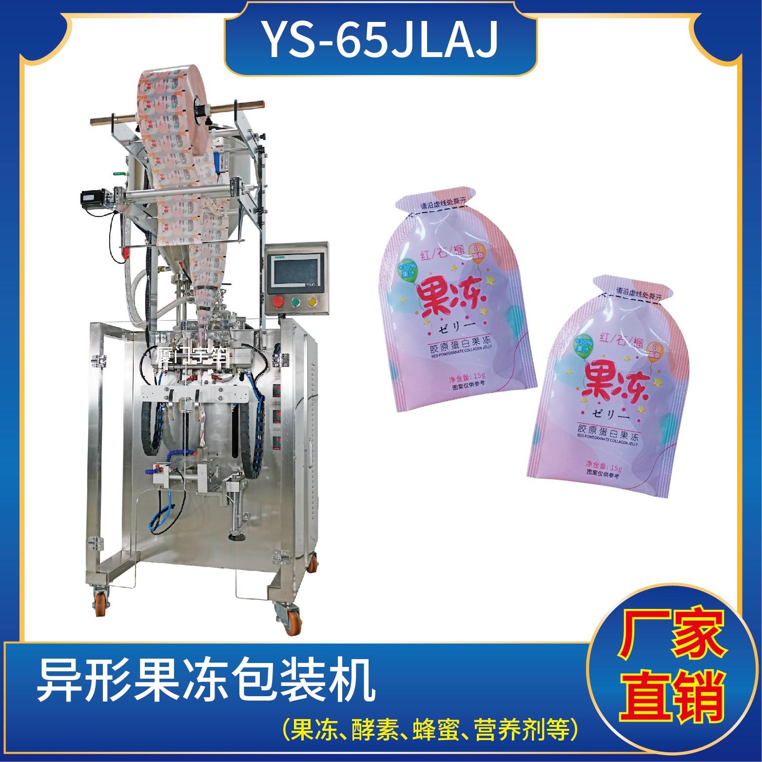 YS-65 異型袋果凍包裝機特 點 1、適用于食品、醫(yī)藥、化工、化妝品行業(yè)中液體、醬料等物品的計量包裝。2、可自動完成制袋、計量、下料、封合、分切、計數(shù)、且可根據(jù)客戶要求配置打印批號等功能。3、觸摸屏操作,PLC 控制,驅動步進電機控制袋長,性能穩(wěn)定、調整方便、檢測準確。智能式溫控儀,PID調 節(jié),保證將…