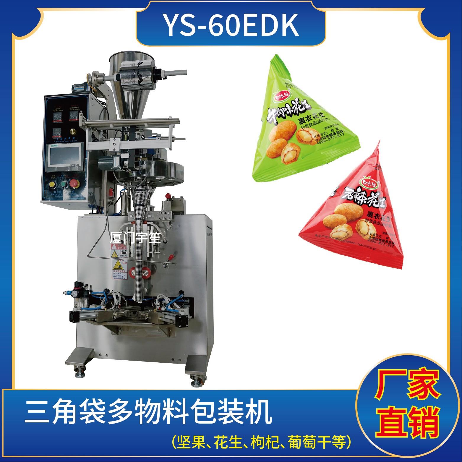 YP-60EK 三角袋包裝機(jī)特點(diǎn)1、適用于食品、醫(yī)藥、化工、化妝品行業(yè)中顆粒物品的計(jì)量包裝。2、可自動(dòng)完成制袋、計(jì)量、下料、封合、分切、計(jì)數(shù)、且可根據(jù)客戶(hù)要求配置打印批號(hào)等功能。3、觸摸屏操作,PLC 控制,驅(qū)動(dòng)步進(jìn)電機(jī)控制袋長(zhǎng),性能穩(wěn)定、調(diào)整方便、檢測(cè)準(zhǔn)確。智能式溫控儀,PID調(diào)節(jié),保證將溫度的誤差范圍控制在1℃以…