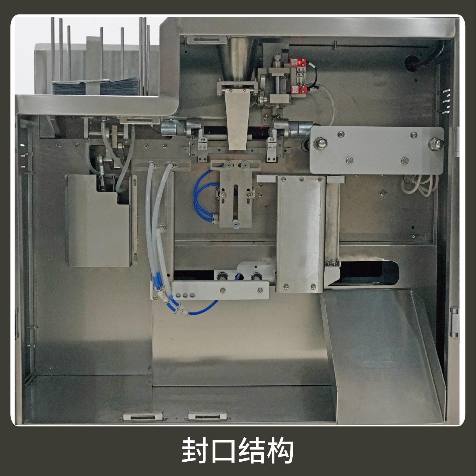 2、調(diào)試方便、占用空間小。包裝流程全自動(dòng),無需人工操作??筛鶕?jù)充填物料的性質(zhì)選配不同的下料結(jié)構(gòu)。