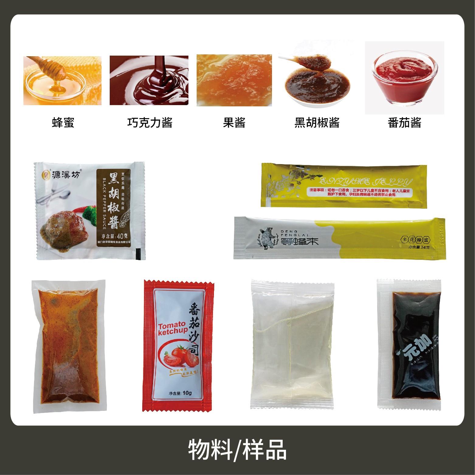 適用于食品、醫(yī)藥、化工、化妝品行業(yè)中液體、醬料物品的計(jì)量包裝,如:番茄醬、辣椒醬、黑胡椒醬、貓條等。